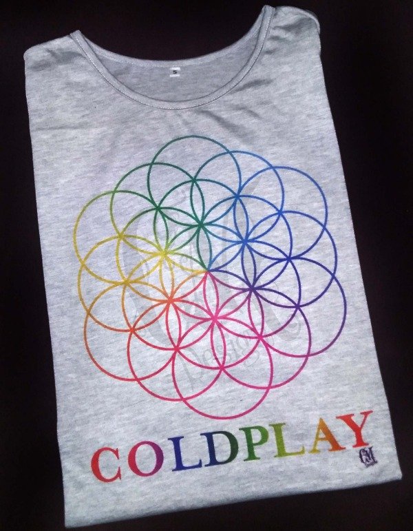 Remeras Unisex y modelo mujer gris melange, diseños Coldplay, todos los diseños son aplicables a cualquiera de los modelos disponibles. Tela excelente calidad, de poliéster y algodòn.