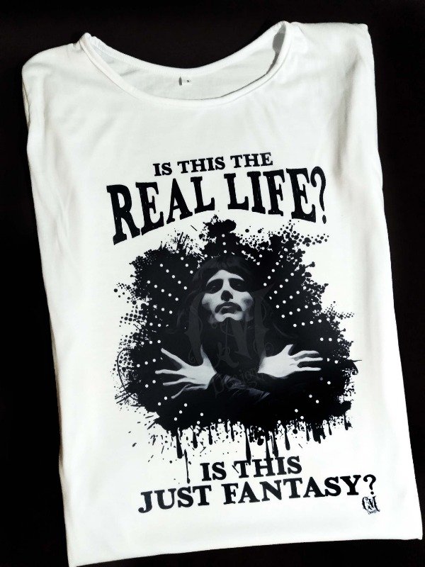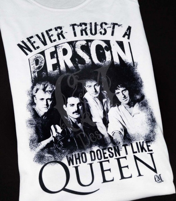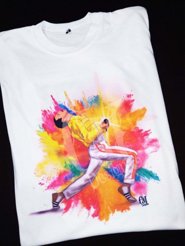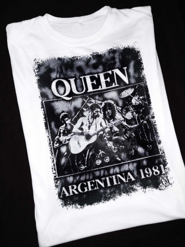 Remeras Unisex y modelo mujer blancas, diseños exclusivos Queen, todos los diseños son aplicables a cualquiera de los modelos disponibles. Tela excelente calidad, de poliéster y algodòn.