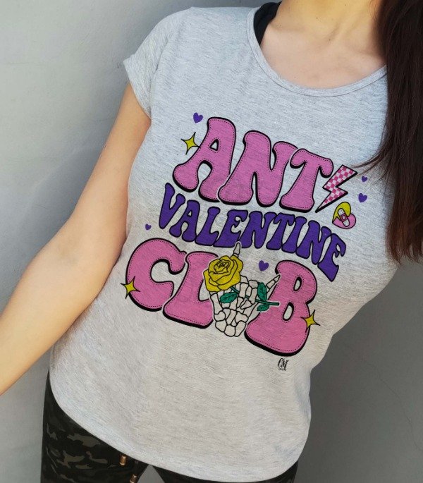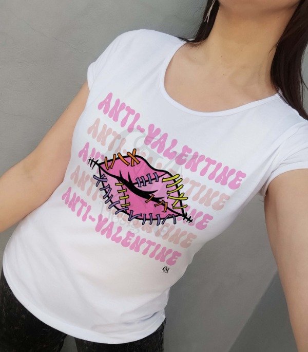 Remeras modelos de mujer Diseños "Antivalentin" todos los diseños son aplicables a cualquiera de los modelos disponibles. Tela excelente calidad, de poliéster y algodón.