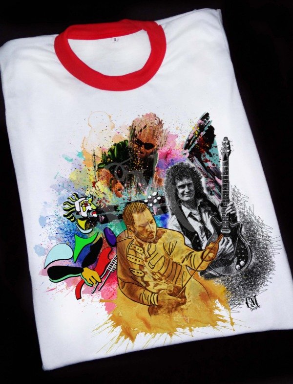 Remeras modelo unisex, cuello y mangas con ribb rojo, todos los diseños son aplicables a cualquiera de los modelos disponibles. Tela excelente calidad, de poliéster y algodòn.